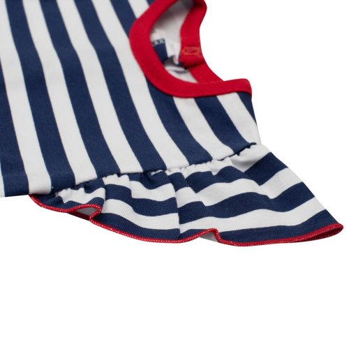 Letní bavlněný overal s krátkým rukávem české značky New Baby Marine. Overálek s krátkým volánkovým rukávem celopotištěný moderními pruhy s nášivkou kotvy. Nášivka je podlepená látkou proti poškrábání. Má praktické zapínání na cvočky na ramínku a mezi nožičkama, což usnadní oblékání a přebalování. Super stylový letní motiv rozzáří každé miminko. Složení: 100% bavlna.