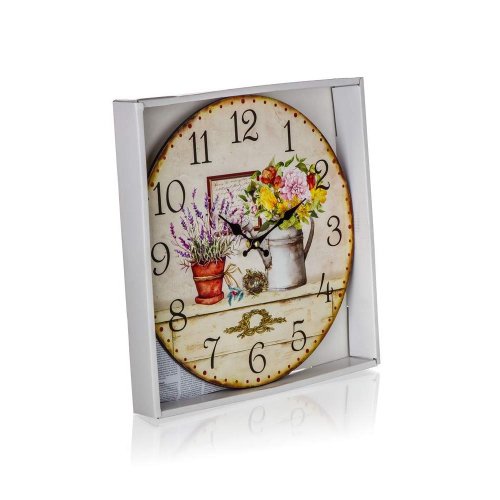 Nástěnné kulaté hodiny FLOWER s celoplošným dekorem o průměru 34 cm. Hodinový strojek je napájen jedním kusem baterie AA (není součastí balení). Produkt je ideální dekorací do vašeho bytu nebo stylové kuchyně.