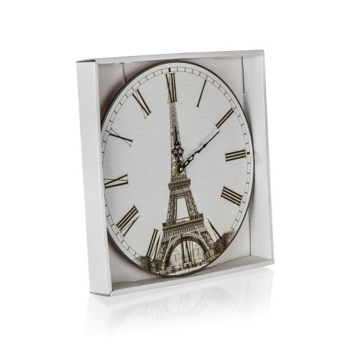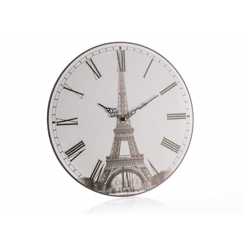 Nástěnné kulaté hodiny TOWER s celoplošným dekorem o průměru 34 cm. Hodinový strojek je napájen jedním kusem baterie AA (není součastí balení). Produkt je ideální dekorací do vašeho bytu nebo stylové kuchyně.