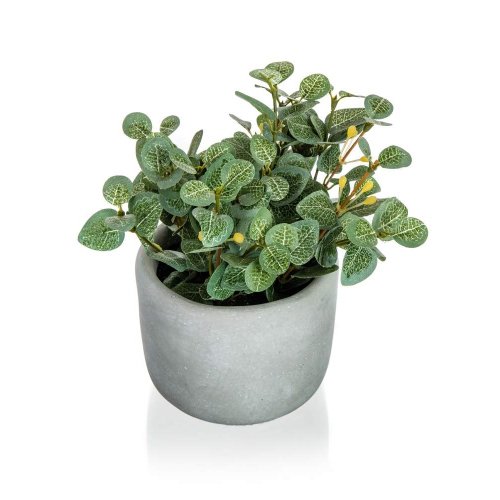 Květina Eucalyptus v betonovém květináči 19 x 18 cm, je umělá květina, která slouží jako náhrada živých rostlin a skvěle se hodí pro dekorování bytových prostor.