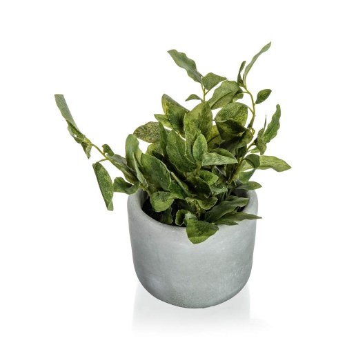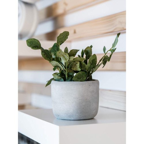 Zelená květina v betonovém květináči 18 x 20 cm, je umělá květina, která slouží jako náhrada živých rostlin a skvěle se hodí pro dekorování bytových prostor.