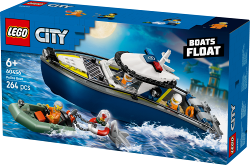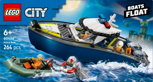 Malí hrdinové si přímo zamilují stavebnici LEGO® City (60456) Honička v policejní lodi. Tato stavebnice je ideální pro stavitele od 6 let a obsahuje policejní loď se dvěma závěsnými motory a vězeňskou celou na palubě a k tomu motorový člun. Obě lodě plují po vodě a děti se s nimi můžou vydat na napínané policejní honičky se 2 policisty, zločincem, rychlým žralokem a ukradeným rubínem! Součástí této stavebnice LEGO City je podrobný tištěný návod na stavění a digitální pokyny v aplikaci LEGO Builder, což je digitální průvodce stavěním s intuitivními nástroji přibližování a otáčení. Umožní jim prohlížet si modely ze všech úhlů, zatímco na nich pracují. Tvoje město, tvoje pravidla! Se stavebnicemi LEGO City se děti vydají na akční stavitelská a herní dobrodružství plná tvořivé zábavy. Zkombinujte tuto policejní stavebnici LEGO k dalším (prodávají se samostatně) z řady LEGO City a zažijte ještě více dobrodružství! Stavebnice obsahuje 264 dílků.