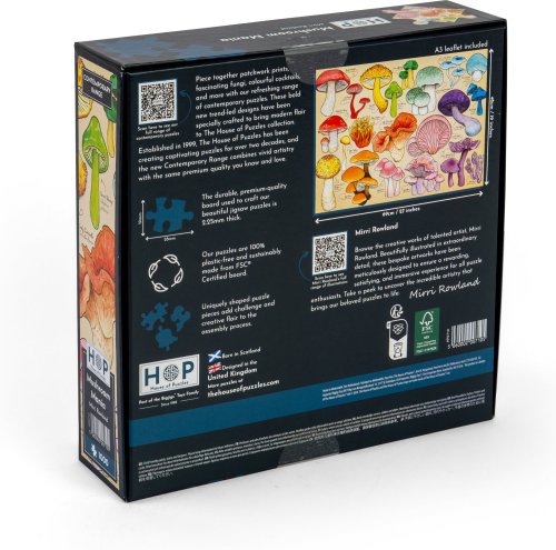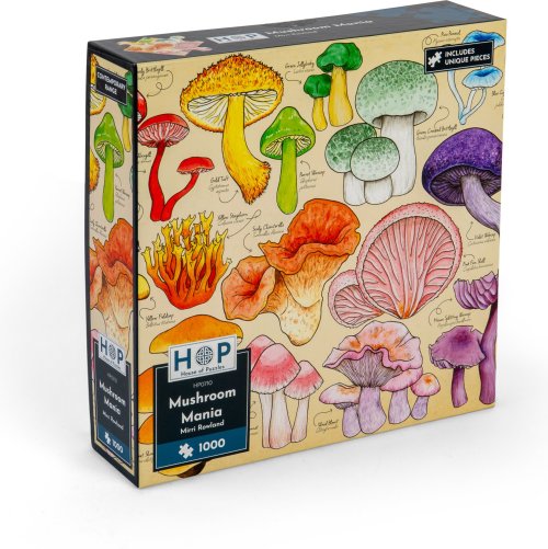 POZNÁMKA: Názvy hub jsou uvedeny v anglickém a latinském jazyce. Rozměr složeného puzzle cca 69 x 48 cm
