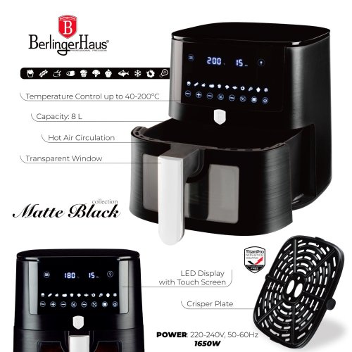 - Napájení: 220-240V ~ 50/60Hz 1650W- Regulace teploty: 40-200° C- XXXL VELIKOST: Koš na potraviny s nepřilnavým povrchem 8L- DIGITÁLNÍ ovládání- Barva: ščerná matná- Funkce udržování teploty a zpoždění- …