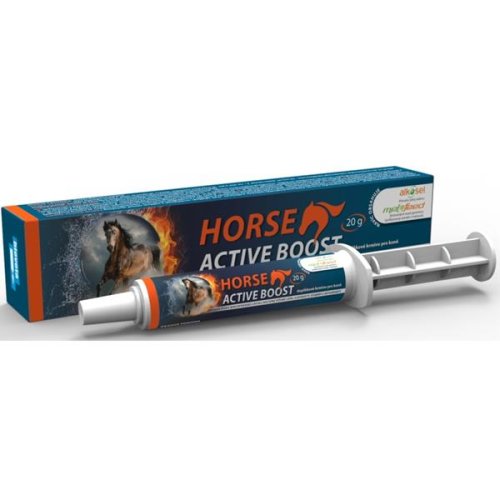 HORSE ACTIVE BOOST poskytuje koním spolehlivou dodávku živin, minerálů a vitamínů důležitých pro jejich zdraví, výkonnost a správnou funkci životně důležitých orgánů. Vyvážený přísun výživných látek, elektrolytů a vitamínů zajištuje rychlou stabilizaci fyzického stavu, efektivní nastartování regenerace a rychlý návrat k plné výkonnosti. Přírodní složka MELOFEED® svým vysokým antioxidačním potenciálem SOD (superoxid dismutázy), indukuje obranu proti volným kyslíkovým radikálům, podporuje zachování integrity kloubní chrupavky a svalové hmoty, omezuje zánětlivé reakce a pomáhá snížit míru poškození tkání po zátěži. Složka ALKOSEL® jako přírodní zdroj selenu synergicky zvyšuje odolnost svalových buněk a toleranci k fyzické zátěži. Po pravidelném podávání byl prokázán také pozitivní vliv na kvalitu semene a životaschopnost spermií u hřebců. Vitamíny skupiny B podporují energetický metabolismus a dobrý příjem krmiva. Železo zajišťuje optimální krvetvorbu a dostatečné okysličení tkání. Esenciální aminokyseliny dodávají metabolickou stabilitu a tvorbu svaloviny. Elektrolyty udržují dobrý přenos vzruchu na nervových zakončeních. Antioxidanty chrání biomembrány před volnými kyslíkovými radikály, podporují metabolismus a využití kyslíku ve svalstvu. Cílové druhy zvířat Kůň Podávané množství a způsob podání Dávkování: kůň (ž.hm. 500 kg): 20 g (1 aplikátor) střední plemena koní: 10 g (½ aplikátoru) malá plemena koní: 5 g (¼ aplikátoru)