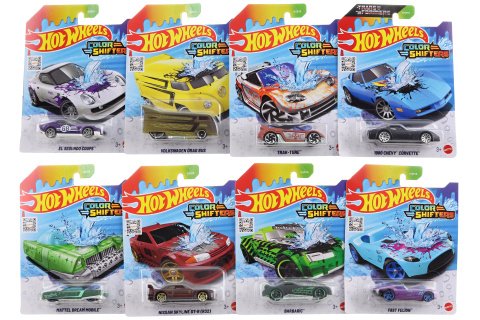 S těmito sadami angličáků – změna barvy teď můžeš změnit barvu autíček z řady Hot Wheels®. Je to jednoduché – teplá voda mění barvu autíčka a studená ji mění zpět na původní barvu. Některá autíčka dokonce umí měnit víc barev! Široká škála dekorů a barev nabízí něco extra pro každého milovníka autíček. Pocákej angličáka měnícího barvu vodou nebo ho ponoř do vody a sleduj, jak se ti promění před očima! Je to jako mít dvě autíčka v jednom – můžeš vyrazit na silnici, závodit po závodní dráze, pak změnit barvu a závodit znovu.