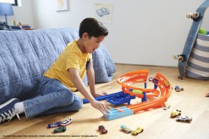 Závoďte se dvěma autíčky Hot Wheels® na tratích vedle sebe, překonávejte skok přes propast a vyhněte se demoliční zóně, abyste jako první dokončili závod! Tento klasický set dráhy Hot Wheels® v sobě skrývá veškerou akci a zábavu při závodění a kaskadérských kouscích a obsahuje dvě autíčka v měřítku 1:64, se kterými můžete začít závodit hned po vybalení z krabice. Set se dá složit na polovinu pro pohodlné skladování a díky rukojeti se snadno přenáší.