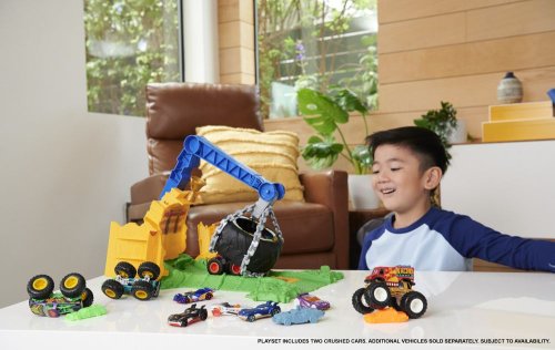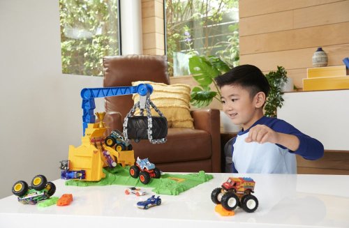 V setu Hot Wheels® Monster Trucks Aréna: Výzva pro Rhinomita mohou děti s přiloženým Monster Truckem Rhinomite prorážet rozebíratelné stěny a získat tak trofej pro vítěze. Dávejte si pozor: nenechte se rozbít obří pneumatikou, která se vznáší nad vámi! Barvy a provedení se mohou lišit.