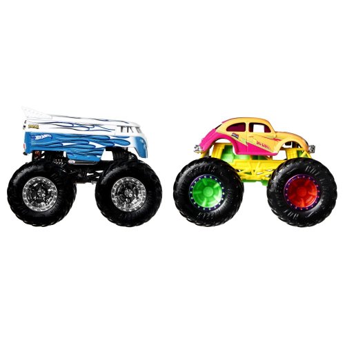 Monster trucky od Hot Wheels® jsou ta nejobávanější auta ze všech! Sestrojeny tak, aby soutěžily mezi sebou, utkávají se trucky v přímých soubojích, kde maximálně využijí svá OBŘÍ kola! Užij si ďábelskou zábavu s tímto obávaným duem v měřítku 1:64, které bylo zrozeno k demolici všeho, co má kola!
