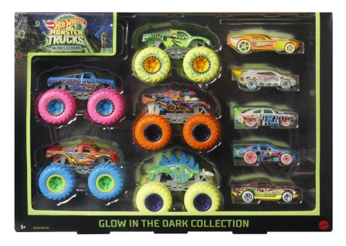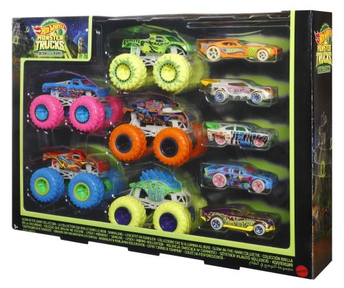 Celkem 10 aut pohromadě dělá z tohoto setu Hot Wheels® Monster Trucks Svítící ve tmě angličák & truck hotovou super sbírku! Pět Monster Trucků z odolného kovu a pět angličáků v měřítku 1:64 zaručuje nekonečnou senzační hru s bouračkami - ať už necháte světla zapnutá, nebo je vypnete! Prvky zářící ve tmě dávají hře nový rozměr. Děti mohou sbírat další auta a hračky Monster Trucks pro ještě více kaskadérských kousků, závodění a bojování! Skvělý dárek pro děti od 4 až do 8 let, hlavně pro fanoušky monster trucků! Barvy a vzhled výrobků se mohou lišit.
