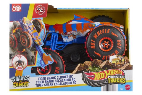 Hot Wheels Monster Truck lezec Tiger Shark RC je připravený drtit, bourat a šplhat! Díky schopnosti jízdy v různém terénu a inovativnímu ocasu, který pomáhá tomuto dravci překonávat překážky i soupeře, zvládne opravdu hodně. Ve speeder módu se díky pneumatikám Grip Action hravě prožene různými povrchy. V climber módu se ocas prodlouží a Tiger Shark zvládne vyšplhat přes překážky jako šampion. Stačí stisknout tlačítko na ovladači a auto se roztočí do bláznivé akce, při které předvede svou rychlost i styl. Barvy a vzhled výrobku se mohou lišit.