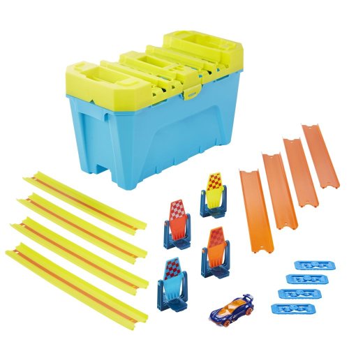 Vybudujte EPICKÝ svět kaskadérských kousků Hot Wheels® pomocí sortimentu Track Builder Box. Spousta zakrnělých komponent přináší příležitosti pro přizpůsobení, řešení problémů, experimentování a zvládnutí dovedností! Podívejte se na Loop Challenge Box a Stunt Box; každá sada má působivý počet kusů s oranžovou stopou, křivkami, odpalovacími zařízeními, více konektory a vozidlem Hot Wheels®. Loop Challenge Box má bláznivou smyčkovou akci a Stunt Box také obsahuje 16+ cihel pro nekonečné možnosti kaskadérství. Víceúčelové kousky lze použít v téměř nekonečných kombinacích k odemčení kreativity. Skvělé pro uložení všech vašich komponent Hot Wheels®, ale je také součástí vašeho triku s více body pro připojení stopy! Vylepšete své stavby pomocí předmětů pro domácnost, jako jsou červené šálky, papírové tuby, knihy atd. Nepoužívá se u některých vozidel Hot Wheels®. Každý se prodává samostatně, v závislosti na dostupnosti. Barvy a dekorace se mohou lišit.