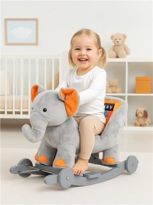 Neobyčejně krásný houpací sloník s kolečky PlayTo byl navržen pro děti, které mají rády dobrodružství. Pevné dřevěné lišty a rukojeti pomáhají dítěti udržet rovnováhu. Houpací lišty lze navíc jednoduše odšroubovat. Překlopením jednoduchého mechanismu na lištách vysunete kolečka, čímž ve vteřině změníte houpací hračku v jezdícího sloníka. Celá hračka je vyrobena z hebkého a velmi příjemného na dotyk plyšového materiálu. Po stisknutí ouška sloník zazpívá veselou písničku. Baterie jsou již součástí sloníka. <BR>Charakteristika:<BR>- dřevěné houpací lišty<BR>- stabilní konstrukce<BR>- interaktívní ouško<BR>- hebký a příjemný materiál<BR>- pohodlně tvarované sedlo<BR>- možnost demontáže houpacích lišt<BR>- nosnost do 30 kg<BR>- od 3 let<BR> Rozměry:<BR>- výška bez lišt 43 cm<BR>- délka lišt 69 cm<BR>- délka sloníka 55 cm<BR>- šířka sloníka 35 cm<BR>- výška sedla od země bez lišt 25 cm<BR>- výška sedla od země včetně lišt 32 cm<BR>- šířka sedla 19 cm<BR>- hmotnost netto 4 kg<BR>Rozměry balení:<BR>- 45x32x54 cm<BR>- hmotnost brutto 5 kg<BR>