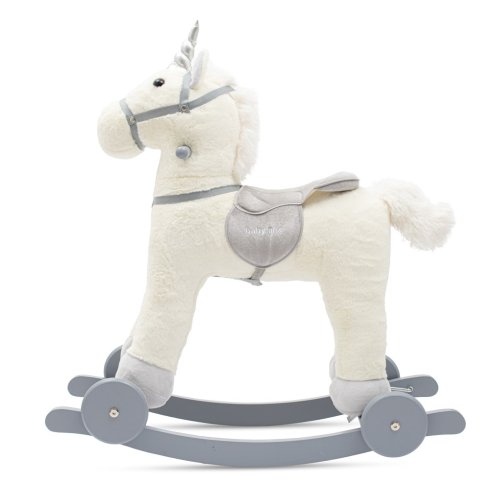 Tento roztomilý bílý houpací koník značky Baby Mix je ideální volbou pro každé dítě. Navržen s ohledem na bezpečnost a radost nejmenších, nabízí jak tradiční funkci houpání, tak možnost jízdy na kolečkách. Díky pevným kolečkům může být koník pohybován po podlaze, což ještě více obohacuje zábavu. Vestavěná melodie dělá houpání na koníkovi ještě zábavnější, stimuluje rozvoj sluchu a podporuje dítě k aktivní hře.