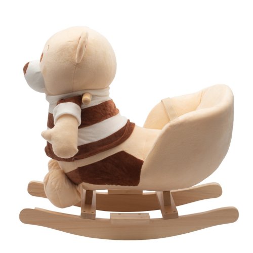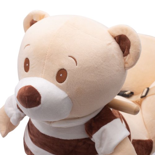 Houpací medvídek PlayTo má sedlo, dřevěné rukojeti a dřevěná stupátka na nohy. Houpání je pro malé děti velmi zábavné procvičuje držení rovnováhy. Medvídek po zmáčknutí tlapky hraje melodii. Dítě si samo dokáže z křesílka dosáhnout na ouško a spustit hudbu. Medvídek je vyroben z kvalitního měkkého plyšového materiálu, díky čemuž si Vaše dítě může dlouho užívat skvělou zábavu. Sedlo je díky optimálnímu tvaru pohodlné a bezpečné. Dítě lze připoutat pomocí bezpečnostního pásu.