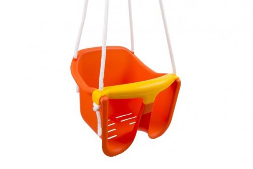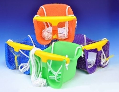 Dětská závěsná houpačka, která je díky své konstrukci a bezpečnostní pojistce, určena pro velmi malé děti.