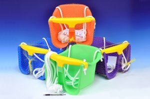 Varianta dětské závěsné houpačky. Vzhledem ke své konstrukci a bezpečnostní pojistce je určena pro velmi malé děti, ale maximálně do 3 let věku. Rozměr: velikost sedáku 25 x 17 cm, výška opěrátka 23 cm. Délka lan 100-170cm. V nabídce v barvě oranžové, zelené, modré a fialové.