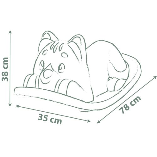 Houpačka s ergonomickým sedátkem ve tvaru kočky v zelené barvě. Uši slouží jako držátka. Plastové díly jsou ošetřeny anti-UV, což zajišťuje dobrou odolnost a stálost barev v průběhu času. Tento výrobek obsahuje minimálně 98% recyklovaného materiálu. Nosnost maximálně 50 kg. Rozměry houpačky (DxŠxV): 35 x 78 x 38 cm.