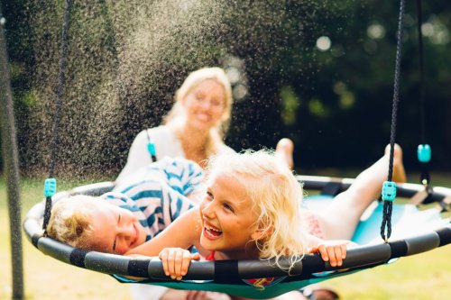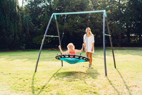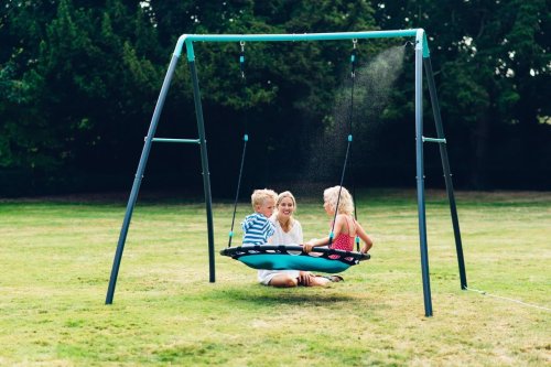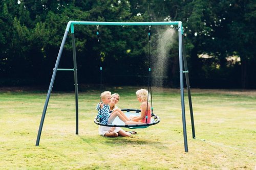 Připojte dětskou houpačku Plum® s kovovou konstrukcí a tryskou na výrobu mlhoviny k zahradní hadici a užijte si osvěžující zábavu v horkých letních dnech. Extra vysoký ocelový rám zaručuje vysokou stabilitu a je vyroben z práškově lakované oceli pozinkované zevnitř i zvenčí, které poskytuje trvalou ochranu proti rzi. Šedá barva rámu s nebesky modrou vytváří nádhernou barevnou kombinaci. Pohodlné houpací hnízdo poskytuje dostatek místa pro dvě malé děti nebo dospělou osobu. Rozměr houpacího kruhu: cca 120 cm. Rozměr sestavené houpačky cca: 218 x 215 x 238 cm. Maximální nosnost uživatele: 100 kg. Pouze pro venkovní použití pod dohledem dospělé osoby. Nevhodné pro děti mladší 36 měsíců – nebezpečí pádu. Rozměr balení: 22 x 120 x 38 cm. Věk: 3+