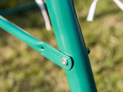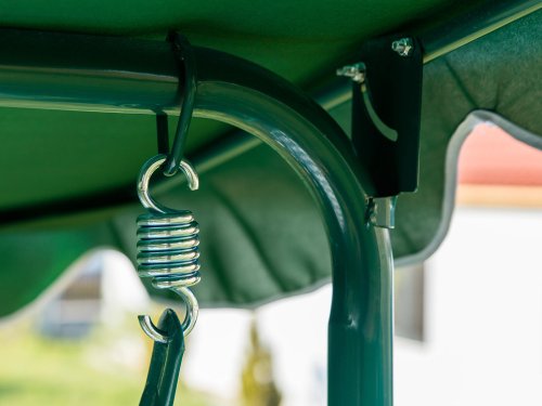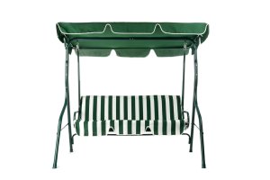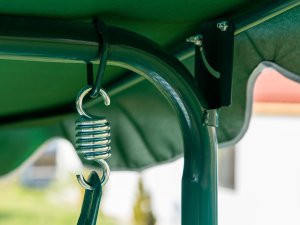 Zahradní houpačka STRIPY II má kovovou konstrukci ošetřenou práškovým lakováním v zelené barvě. Polyesterový sedák, výška 6 cm.
