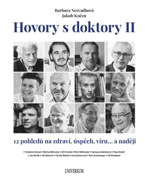 Barbara Nesvadbová a Jakub Knězů, autoři úspěšné knihy Hovory s doktory, oslovili dalších dvanáct předních českých lékařů, se kterými mluví nejen o jejich práci, ale i o víře, životě, odpovědnosti… Na jejich otázky odpovídají: profesor Vladimír Beneš, neurochirurg, profesor Michal Miovský, adiktolog, či chirurg Jiří Froněk. Kardiolog, profesor Petr Widimský, je specialista na akutní infarkt, vytvořil originální život zachraňující postup a patří ke čtyřem nejcitovanějším českým lékařům. Svoje názory objasňuje i mikrobioložka a diagnostička Václava Adámková, profesor Pavel Kolář, rehabilitační lékař, který už nejednomu sportovci zachránil zdraví či kariéru, profesor Jan Štulík, spondylochirurg, profesor Jiří Raboch, psychiatr, chirurg Tomáš Šebek, profesorka Iva Holmerová, gerontoložka, profesor Petr Arenberger, dermatolog, a profesor Jiří Šnajdauf, dětský chirurg.