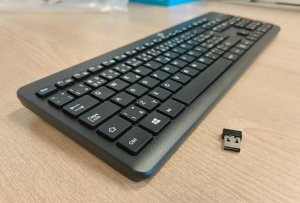 Elegantní bezdrátová klávesnice, založená na technologii 2,4 GHz, s tichými klávesami typu chiclet a dlouhou výdrží na baterie. Připojení lze realizovat skrze USB adaptér a technologii 2,4 GHz. Napájení zajišťují dvě AAA baterie.