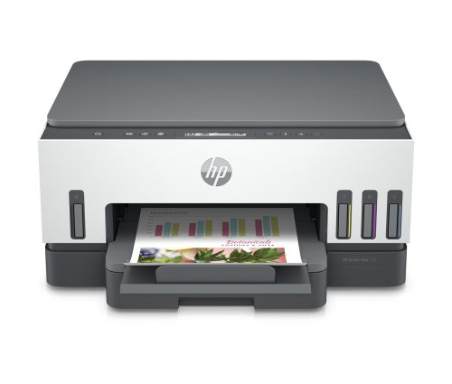 *HP Smart Tank 720 *3× originální lahvička s černým inkoustem HP GT53XL, 135 ml *Originální lahvička s azurovým inkoustem HP GT52 *Originální lahvička s purpurovým inkoustem HP GT52 *Originální lahvička se žlutým inkoustem HP GT52 *Černá tisková hlava HP *Tříbarevná tisková hlava HP *Napájecí kabel *Dokumentace