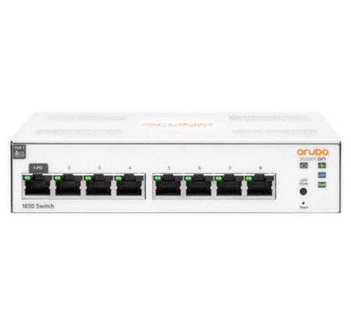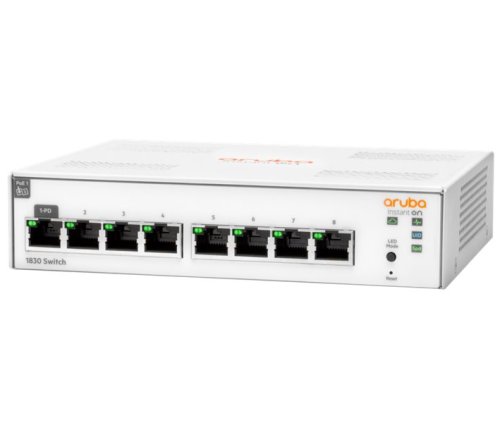 Spravovatelný switch nabízející 8x 10/100/1000 Mbps RJ-45 portů. Na prvním portu je k dispozici PoE vstup pro prostředí, kde není k dispozici síťové napájení. Přepínací kapacita switche je 16 Gbps a rychlost směrování činí 11,9 Mpps. Mezi hlavní přednosti patří podpora Global Storm Control, TPM, snadná tvorba oddělených VLAN, QoS nebo IGMP Snooping. Lze ho položit jen tak na stůl, ale také namontovat pod něj či na zeď. Bezventilátorové provedení zaručuje naprosto tichý chod. Řada Aruba 1830 nabízí uživatelsky přívětivé webové rozhraní či mobilní aplikaci pro snadnou konfiguraci a správu.