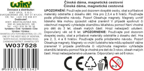 Hra čínská dáma magnetická cestovní. Rozměry pouzdra 10x18,5 cm. Plechové pouzdro slouží po otevření jako hrací deska. Figurky jsou magnetické.