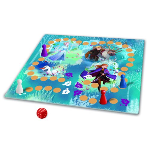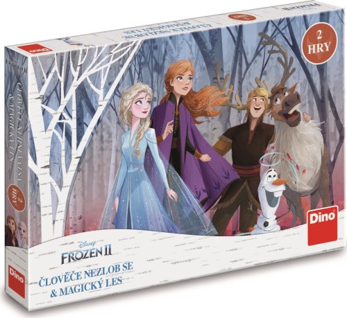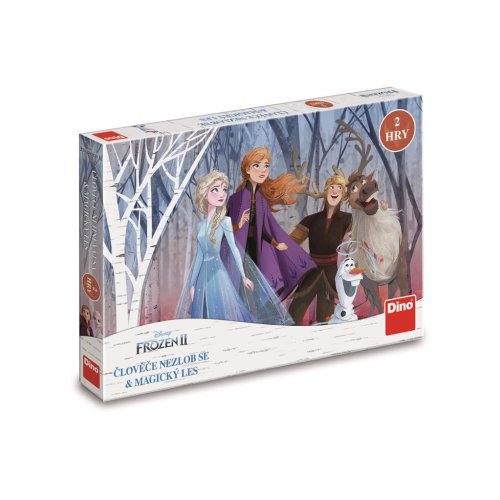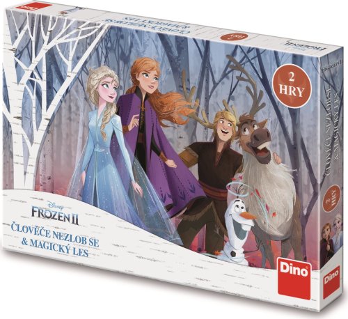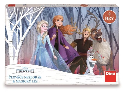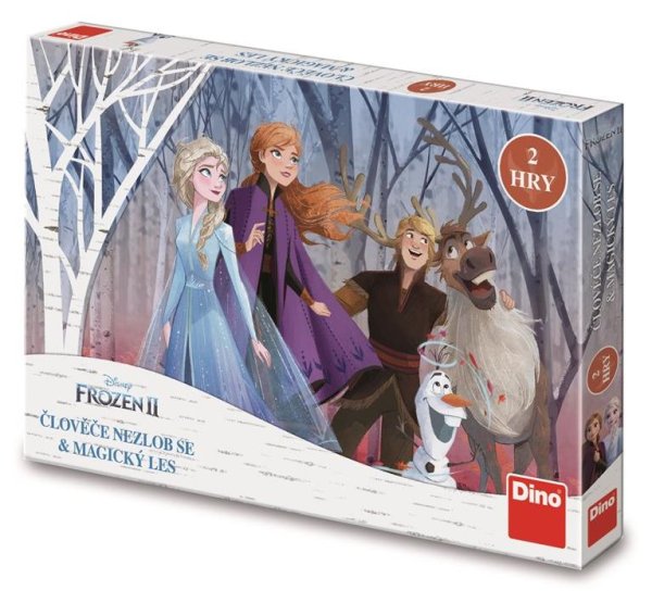 Mohlo by se zdát, že v Ledovém království frčí nejvíc hra na koulovačku. Ovšem stejný úspěch tu má i Člověče, nezlob se! Anna, Elsa a jejich kamarádi si s dětmi rádi zahrají tuhle osvědčenou klasiku, v níž je potřeba dostat čtveřici figurek do správného domečku. Další hrou, kterou v balení najdete, je Magický les. Cíl je podobný jako u člobrda, dostat své panáčky do cíle. Jen cesta je spletitější, kráčí po ní za každého hráče dvě figurky a šestka má úplně jinou kouzelnou moc. Při hře si děti užijí kopec zábavy a taky se naučí smířit se s občasnou náhodou, která chod obou her řídí. Začínající počtáři si procvičí počítání. Balení obsahuje: Oboustranný herní plán, 16 figurek ve 4 barvách, bodová hrací kostka, pravidla pro obě hry. Pro 2-4 hráče. Doba trvání - 30 min. Rozměry balení 34 x 23 x 4 cm. Vhodné pro děti od 5 let.