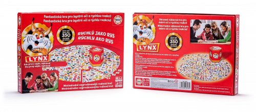 Kdo je rychlý a bystrý jako rys, tak vyhrává! Akční společenská hra Educa Borras Lynx 350 Pictures je vhodná pro 1 až 6 hráčů ve věku od 6 let, takže se skvěle hodí pro školu v přírodě, rodinné večery, narozeninové oslavy i další příležitosti všeho druhu. Každý soutěžící si procvičuje reflexy, pohotovost i koordinaci rukou a očí, takže hra nakonec prokáže, který z hráčů má nejsilnější zrak a nejrychlejší reakce. Stačí rozložit hrací desku, promíchat balíček, líznout si 3 ilustrované kartičky a můžete začít s hrou, která průměrně trvá okolo 20 minut. Celý set obsahuje více než 350 herních kartiček, sadu barevných žetonů a 9dílnou hrací desku, kterou lze pokaždé sestavit v jiné herní variantě, což zaručeně zatočí s nudou a rutinní zábavou jednou provždy.