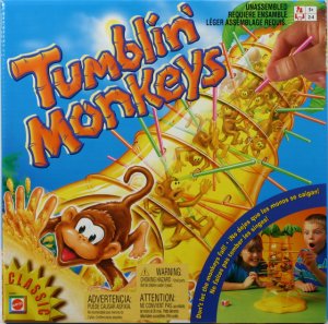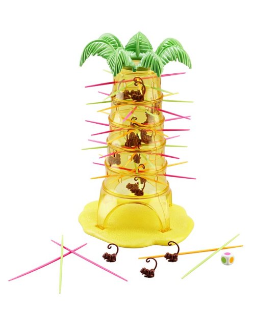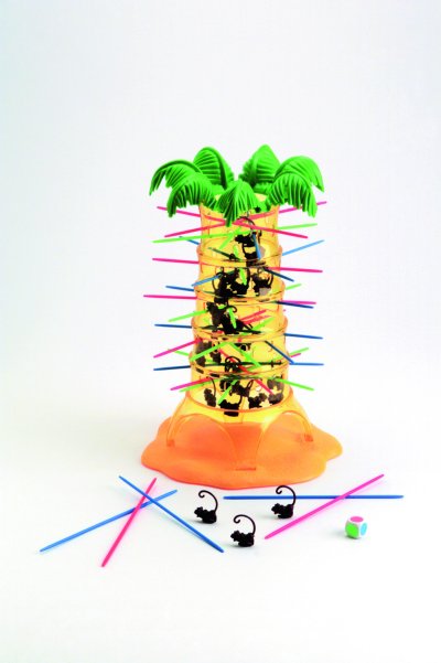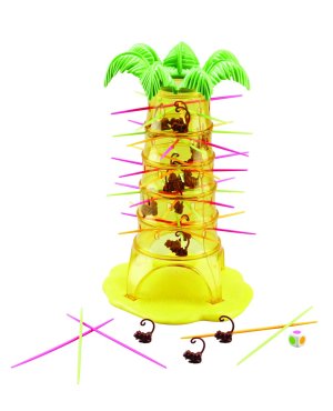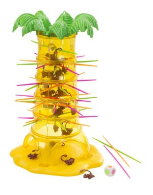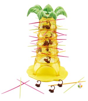 Hra plná zábavy obsahuje 1 strom, 30 opiček, 30 tyček ve 3 barvách, 1 kostku. Hoďte kostkou a opatrně vytáhněte tyčku odpovídající barvy ze stromu. Spadla nějaká opička ? Špatně !!! Čím méně opiček máte, tím lépe. Doporučený věk 5 let +