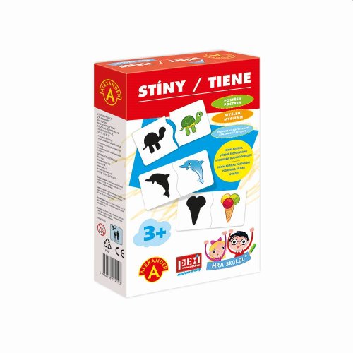 HRA ŠKOLOU® - STÍNY je naučné hraní pro malé objevitele od 3 let rozvíjí kombinační schopnosti, pozorování a postřeh. Sestav a poznej 24 dvojic složených ze stínu a barevného obrázku zvířat, hudebních nástrojů a věcí z každodenního života.