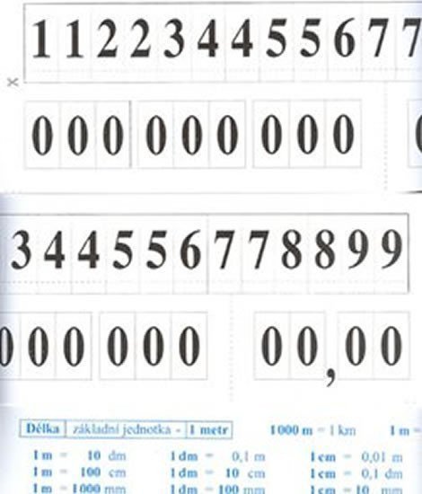 Hru doporučujeme používat od 2. pololetí ve 4. ročníku a v 5. ročníku. Hra je určena k nácviku správného sestavování, čtení a psaní velkých čísel. Ze zadní strany jsou uvedeny převody délkových jednotek. Jedna hra obsahuje 10 karet, které si žáci jednotlivě rozstříhají. NNS402
