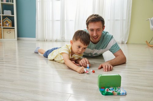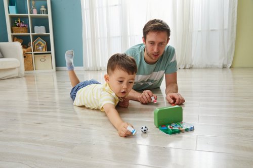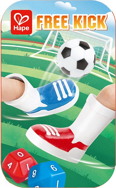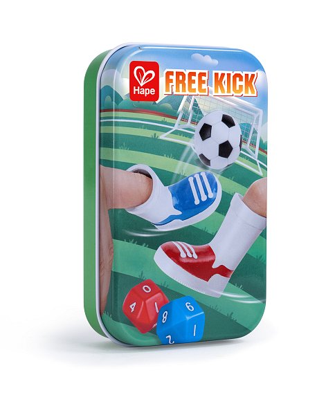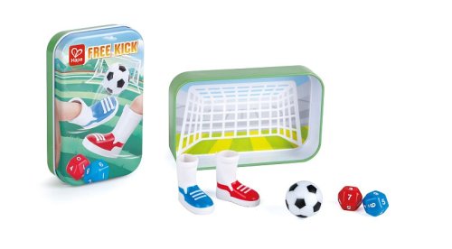 Hra Free Kick – mini prstový fotbal. Vyber si, kdo bude střílet a kdo bude v brance, a pak zkus, kolik bodů dokážeš proti svým přátelům vstřelit! Zkus si 10 střel, pak si vyměň místa a zkus, jestli to zvládneš lépe. Obsahuje: dvě kopačky na prsty, dvě bodovací kostky, jednu kovovou branku a jeden fotbalový míč. Hra je uložena v kovové krabičce. Hračka rozvíjí kreativitu, sociální a jazykové dovednosti. Rozměry balení: 13,2 x 8,5 x 2,7 cm. Věk: 3+