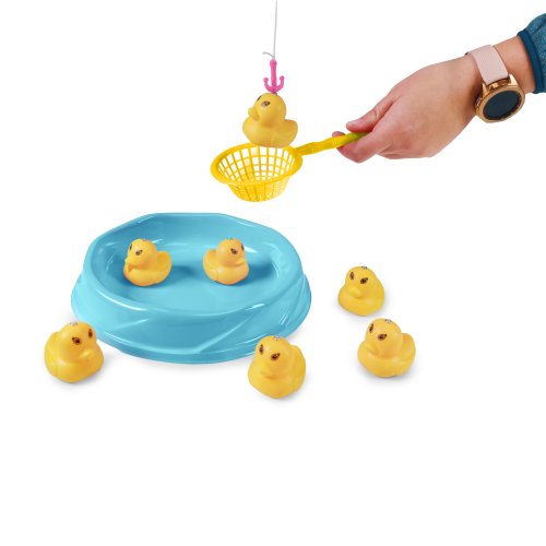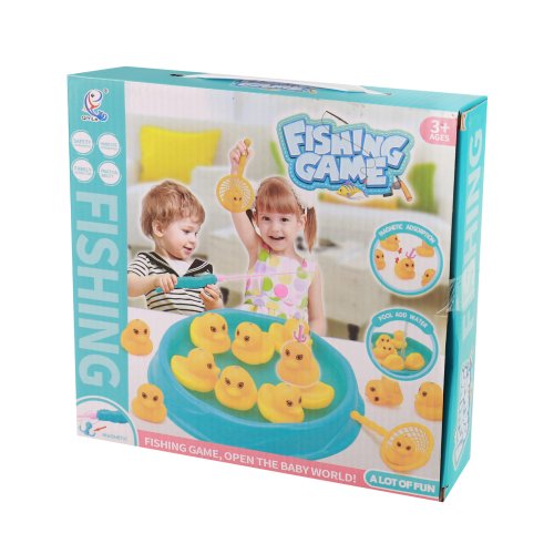 Zábavná hra pro malé rybáře! Tento praktický set obsahuje 1 prut s háčkem, plastové mini jezírko a 6 kačenek s magnetky. Nádobu naplň vodou, vlož kačenky do vody, připrav si prut a můžeš začít! Díky prutu opatřeným magnetem, pro tebe nebude lovení kačenek žádný problém!