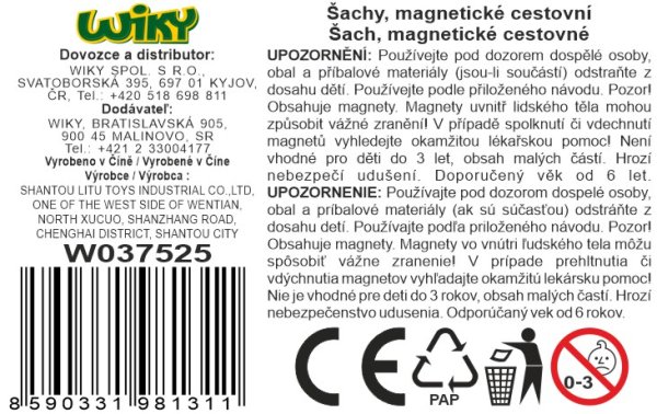 Hra šachy magnetické cestovní. Rozměry pouzdra 10x18,5 cm. Plechové pouzdro slouží po otevření jako šachovnice. Figurky jsou magnetické.