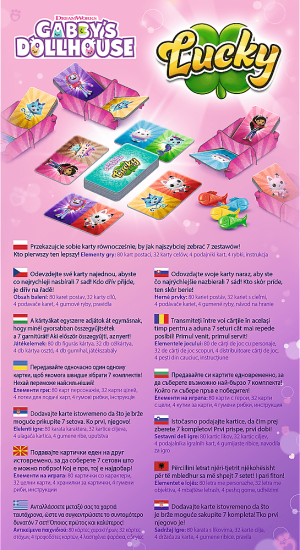 Odevzdejte své karty najednou, abyste co nejrychleji nasbírali 7 sad! Kdo dřív přijde, je dřív na řadě! Balení obsahuje: 80 karet postav, 32 karet cílů, 4 podavače karet, 4 gumové ryby, pravidla. Rozměr krabice: 14,5 x 26 x 10 cm Vhodné od 5 let