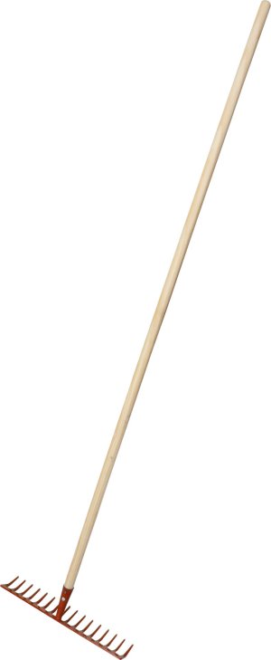 Kvalitní kovové hrábě se 16-ti zuby a dřevěnou násadou.