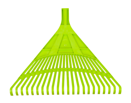 Lehké a praktické hrábě s širokou planžetovou hlavicí z odolného plastu, ideální pro rychlé a pohodlné shrabování listí, trávy a dalšího lehkého odpadu na zahradě.