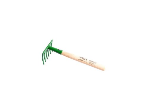 Lehké a odolné kovové hrabičky s dřevěnou násadou, vhodné pro běžné práce na zahrádce.