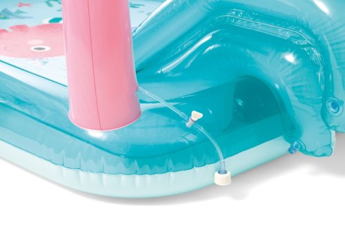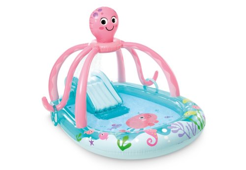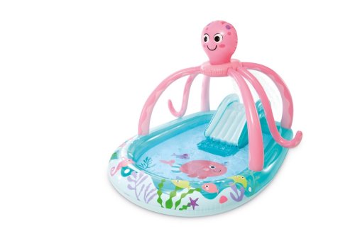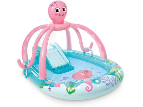Hrací centrum ve tvaru chobotnice zpříjemní dětem každý letní den. Mělký bazének poskytuje osvěžení, skluzavka zábavu a sprcha příjemné ochlazení. Díky materiálům a zpracování odpovídajícím přísným bezpečnostním normám si mohou děti hrát bez obav. Pro případ drobných poškození je v balení přiložena opravná sada.