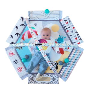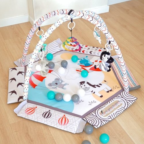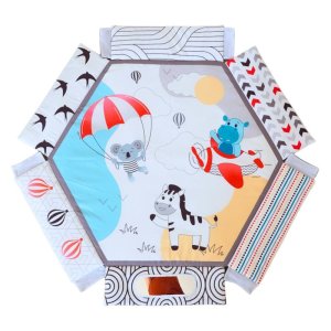 • hrací deka v jemném designu, kterou lze během chvilky přeměnit na bazének (pomocí suchých zipů)