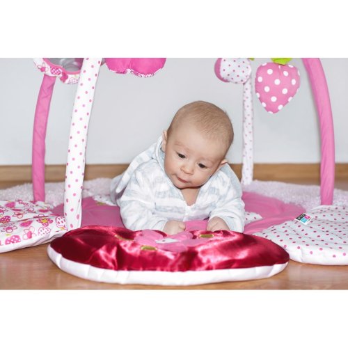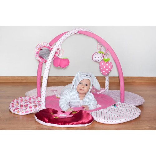 Krásná originální vzdělávací hrací deka PlayTo s hrazdou rozvíjí dětskou představivost díky poznávání barev a tvarů. Hrací deka ve tvaru kytičky je v krásné zářivé barvě. Rozvíjí smysly hmatu, zraku i sluchu díky šustícím a pohyblivým částem. Příjemný a měkký materiál umožňuje pohodlné ležení na bříšku nebo zádech a umožňuje svobodu pohybu Vašeho dítěte. Miminko tak může získat bezpečný útulnější prostor a motivuje ke zvedání děťátka. Hračky lze z hrazdičky snadno sundat. Hračky lze odepnout a používat samostatně. Pořiďte Vašemu miminku pohádkové místo pro hraní i odpočinek. Rozměry: průměr: cca 100 cm, výška cca 54 cm. Vhodné pro děti od 3 měsíců.