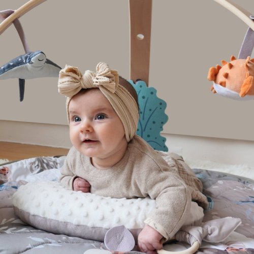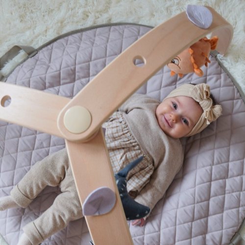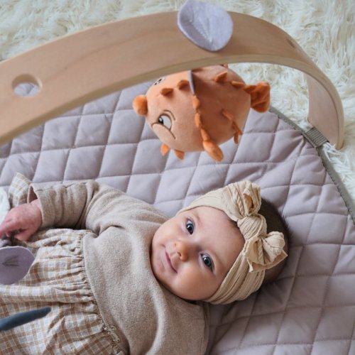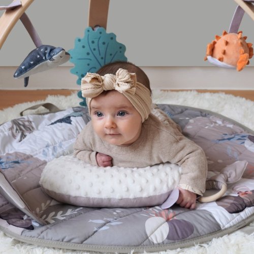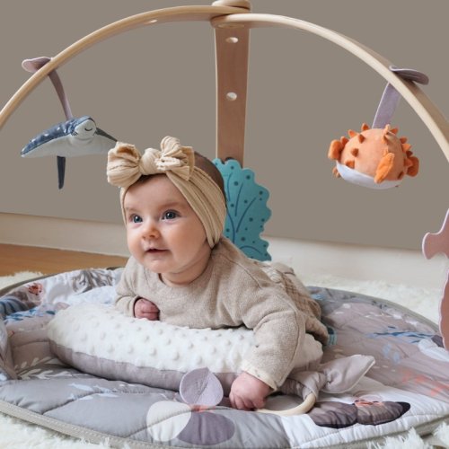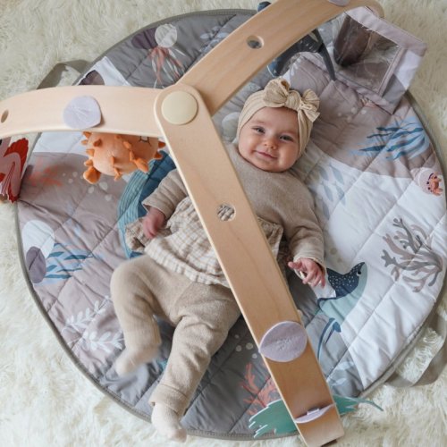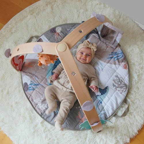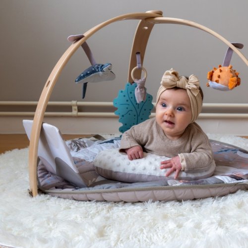 Ocean Bliss je pohodlná podložka s dřevěnými oblouky a měkkými hračkami.