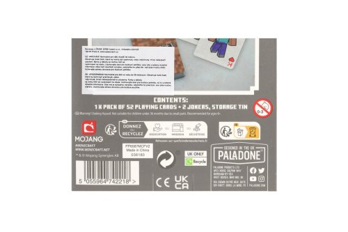 Hrací karty Minecraft musí mít každý milovník populární počítačový hry Minecraft. Díky skladnímu balení si je můžete vzít i na výlet. Sada obsahuje 54 karet. Vhodné pro děti od 6 let.