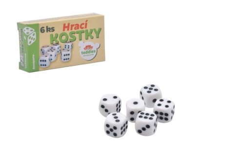 Zahrajte si oblíbenou hru Kostky, ve které je cílem dosáhnout nejvyššího počtu bodů. Nebo se mohou stát součástí zábavných společenských her. Obsahuje 6 ks kostek. Rozměry balení 9 x 5 x 2 cm. Vhodné pro děti od 3 let.