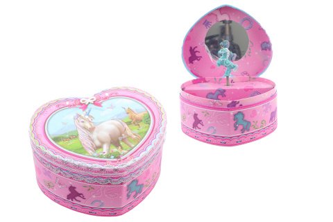 Hrací skříňka šperkovnice truhla. Uvnitř špekovnice je zrcátko a jednorožec, který po natažení klíčku tančí a hraje. Velikost cca 15 x 13 x 7 cm. Baleno v igelitovém sáčku. Výrobek není hračka.