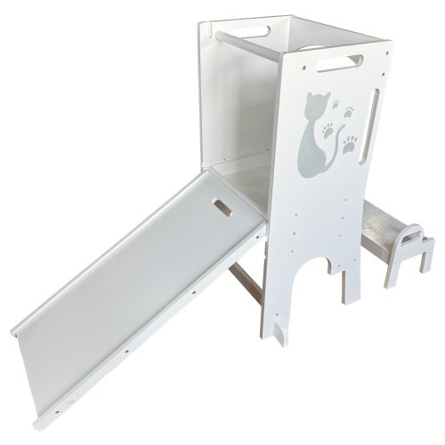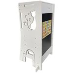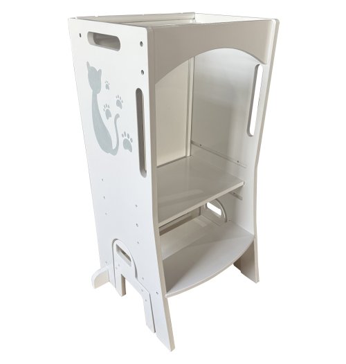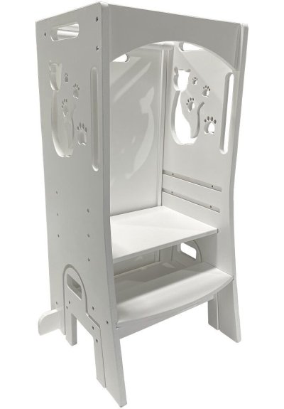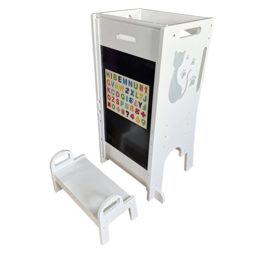 Učící věže jsou víceúčelové stoličky, jenž dávají dětem možnost zapojit se do různých tvořivých činností u kuchyňské linky či pracovního stolu. Umožňuje nejmenším být v úrovni pracovní desky, vidět vše, co děláte a tvořit tak přímo s Vámi – díky tomu máte také neustálý dozor. Věž se skládá ze stojací plochy, na které dítě stojí, schůdku, po kterém se na ni dostane a z ohrádky okolo. Díky své multifunkčnosti si jde s věží i “hrát“. Obsahuje magnetickou tabulku s písmeny a číslicemi a v rozloženém stavu je doplněna o skluzavku. Při používání nenechávejte učící věž v prostoru, ale vždy věž umístěte stranou naproti schůdku k pevné překážce (kuchyňská linka apod.). Upozornění:Prodejem učící věže nepřebíráme odpovědnost za bezpečnost dítěte. Dítě na učící věži musí být pod stálým dozorem dospělé osoby! Hlavní vlastnosti: víceúčelový, funkční nábytekzdokonaluje motorické schopnostiodolná konstrukceobsahuje skluzavku a magnetickou tabulimoderní design s kočičkou