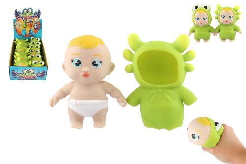Roztomilé antistresové miminko v elastickém zvířecím kostýmu je ideální hračkou pro děti i dospělé, kteří si potřebují odpočinout a uvolnit napětí. Hračka je vyrobena z měkkého a příjemně pružného silikonu, který se po zmáčknutí vždy vrátí do původního tvaru. Zábavný prvek spočívá v tom, že miminko lze vytáhnout z oblečku – a znovu ho do něj schovat. To podporuje jemnou motoriku a rozvíjí představivost při hře. Rozměry výrobku 10 x 14 x 6 cm Vhodné pro děti od 3 let